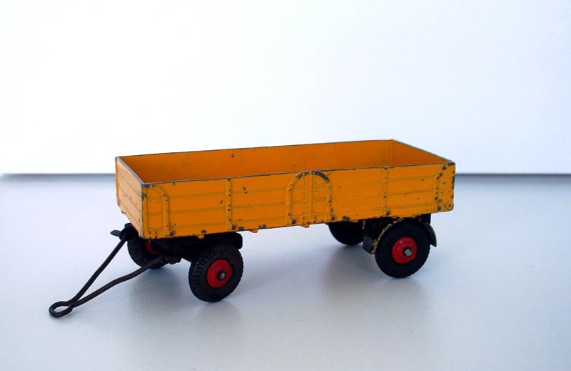 Hi all, Thanks for the compliments! A couple of weeks ago this 551 Trailer arrived. Playworn, but an unusual color. I have seen a few of these, but only with ridged hubs, not with Supertoy hubs. Perhaps this color was made for a short period to match and te be used with the yellow 521 Bedford Articulated Lorry.Kind regards, Rob