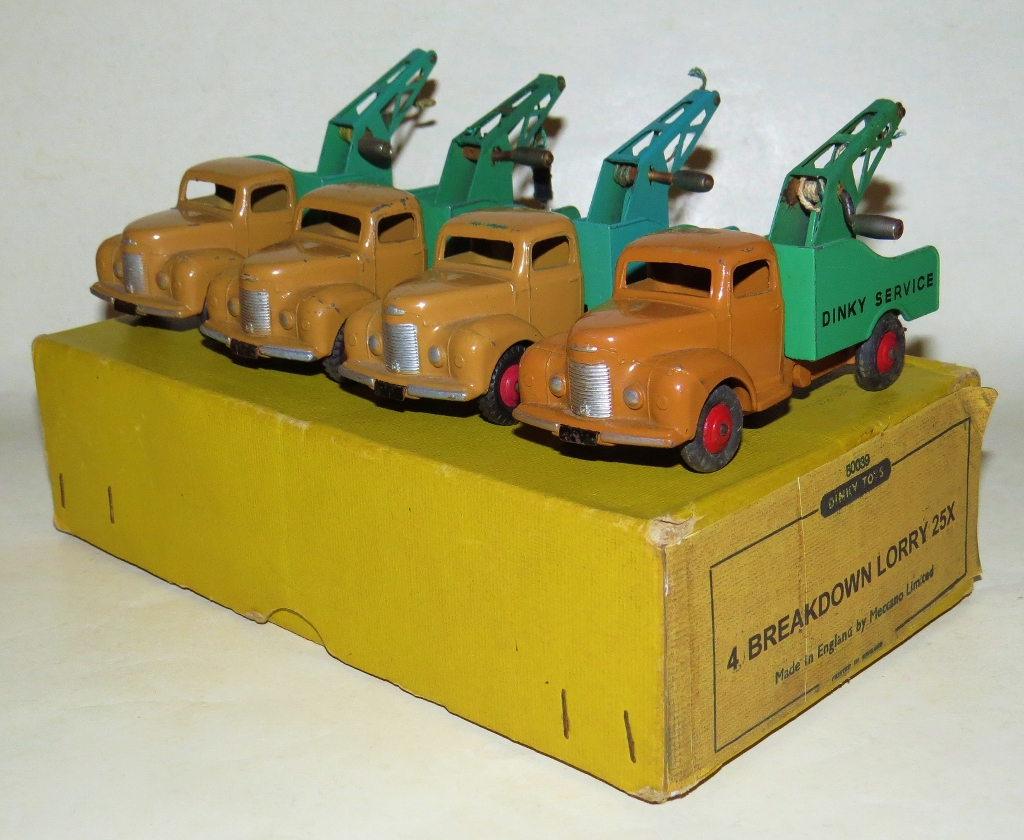 But the box does contain something that I was not expecting. This will be revealed when I complete writing a new Post for the 25x-430 Breakdown Lorry topic! (After I make a decision on which Topic to use, as at present there are three in existence!!) For the observant, the tow hooks are loose in the bottom of the box, and these will have to be restrung. The parcel also contained a boxed Hornby-Dublo set plus other Dinky Toys and photographs of these will be put up on this Topic as soon as I have photographed them under better conditions. As too the contents of the other two parcels. Wow - what a morning! But the pride of them all is this 25x Trade Box. All I need to find are three more excellent examples of a suitable vintage for the box! Kind regards Bruce H. (150) 20170805/1096/1315