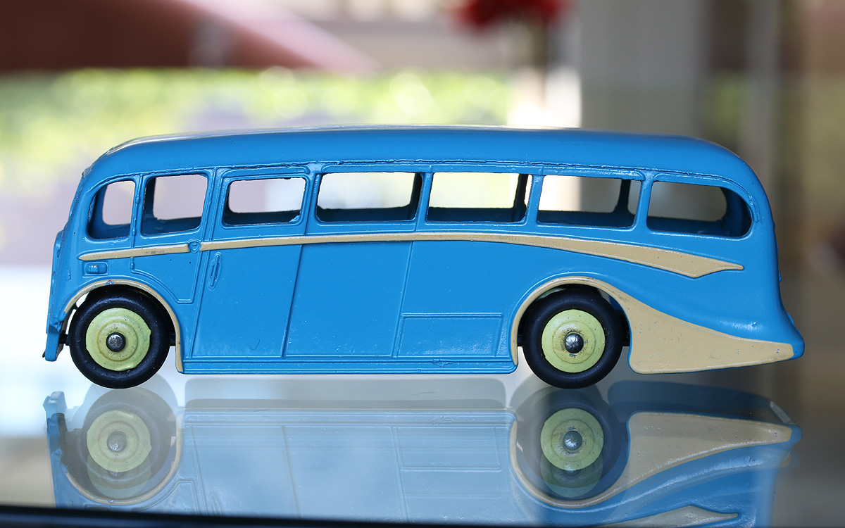 Ron, this observation is interesting enough to re-post this message + photo in the Commercial Vehicles >> 934 thread! After a wonderful DTCA weekend I returned home with two only-dreamt-of acquisitions, a great 34a Airmail Van - 'excellent for its age' as we call it, and a virtually mint blue 281 Luxury Coach, without its box. Both relative bargains that we had not imagined only a decade ago. And upon arrival home I found a notice in my letter box asking me to pick up a parcel from the post office. Contents: a very fine tiltless no. 25s with fixed civilian driver, smooth hubs and nice smooth white tyres. Another easy bargain: The Times They Are A Changin' ...! As soon as I have some more time, I'll post them in the correct threads, each with some comment. Kind regards, Jan