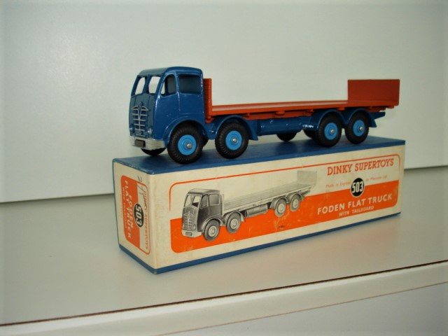 Hi all, Well done Richard. Your patience saved some money. The Pathe News Fiat is a nice model. It always fetches a good price and the price you paid is very reasonable. It has been more than two years since I bought my last Foden. Today this rare 503 second type export version arrived. It is French blue with light blue hubs and a burnt orange Tailboard. I bought it from QDT, some of you must have seen it. Both model and box are unusual. The model has a burnt orange body. On my first and second type Foden with Tailboard in violet blue and orange, the orange body is much brighter. I tried to make a photo showing the difference, but the difference in reality is more striking. (Jan, I miss your photo quality and experience!