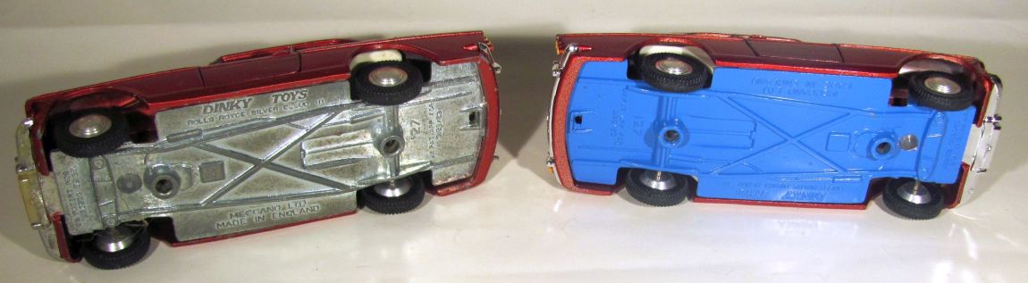 Hello Ron, I confirm that I have also heard about yellow base plates for the 127 Rolls-Royce. The early chassis did not have the holes for the cristal boxes and were painted black as on the picture below.