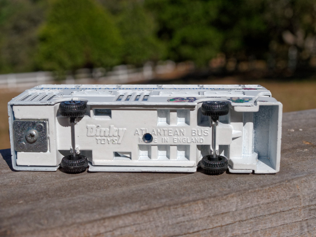What beautiful catalogues, Jan! Meanwhile my last Dinky Toy -- well, for a while, anyway -- arrived today. I was pleased to get this uncommon bus. As members will probably already know, this promotional came affixed to a plinth. Mine had obviously been removed so the recipient's child could play with it, but one can see the hole drilled in the base where the screw was.