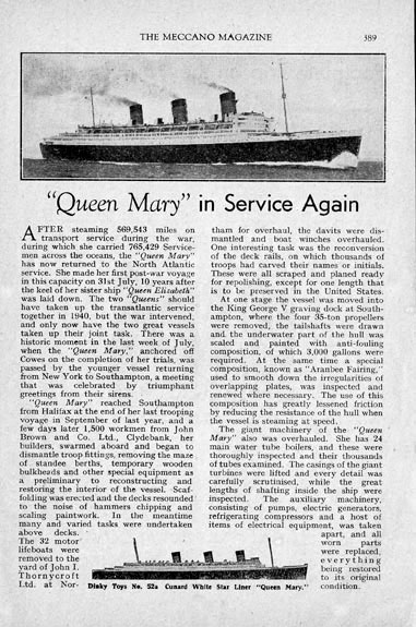 The Queen Mary was so iconic and had such a long life (in fact still in existence) that it regularly showed up in the Magazine for almost thirty years. A selection: