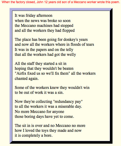 I have also found a picture of a picket after the Binns road factory closed and a poem writen at the same time.