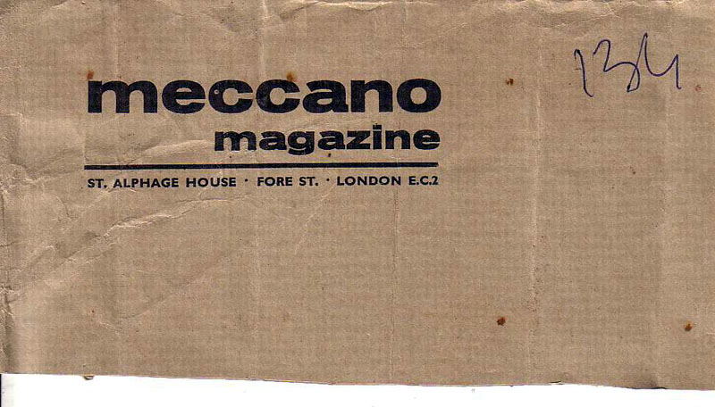 While fumbling into some crates this morning, I found part of an enveloppe which has been used to send my copy of the April 1964 Meccano Magazine.The number 134 is the number in the Paris street where I lived at that time.This bit of paper has been used ever since as a partition in a Solido tradebox.The following text from the book The Hornby companion series Vol. 7 explains why the address on the enveloppe is not the Binns road one.