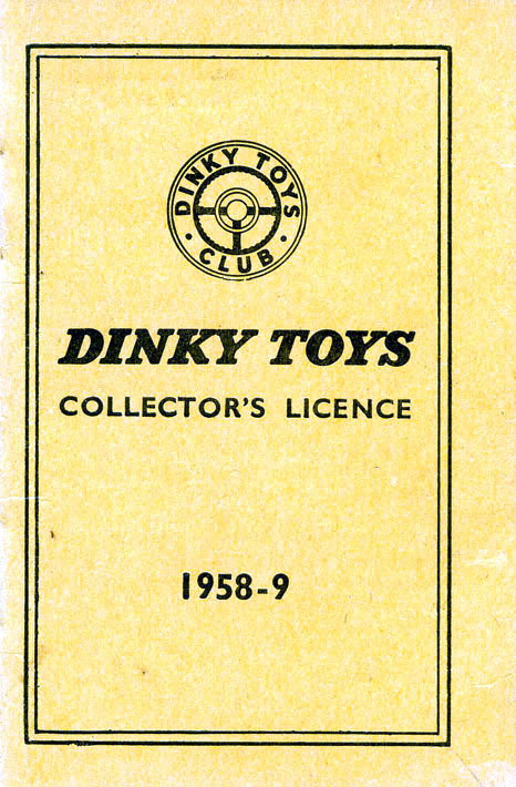 Dave' Greetings all! Adding to Dave's contribution of the cover of the 1958-59 licence, the following are the other three licences issued for Meccano's Dinky Toys Club, showing both front and rear covers: