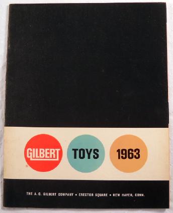 Remembering that H.H.D. was known as the 'Meccano Company of America' pre-war, at the same address as H.H.D. was later, I am among those who believe that Mr. Dobson was originally a Meccano employee, and that Meccano Ltd. retained a substantial share (at least) in the company post-war, but I guess we shall never know the truth, nor why the company shut down. (Ironically I once heard from a fellow collector that Henry Hudson Dobson Jr., the son, *did* also go into the toy distribution business and wound up in Texas (no connection to AVA). But I cannot locate any documentation to this effect, so it's only hearsay.) What is indisputable is that H.H.D. did an excellent job of promulgating Dinky Toys throughout the U.S. -- for you lucky older collectors who were able to be on the scene -- but then it all went pear-shaped, as the British say, during 1960. I will never forget being, as a fanatically interested five-year-old, being handed the 1961 Dinky Toy catalogue by staff of the Palo Alto Sport and Toy World (a shop which amazingly, still exists under family ownership), but being told that they could no longer get new models because the distributor had shut down. It was suggested to my mother that she write Meccano Ltd. directly or contact a company called Keystone Brothers that was supposed to be the local jobber (if she ever pursued either, it didn't do any good). The dates of the A.C. Gilbert arrangement are well-known: just from 1963 until 1964, at which point Lines Brothers took over. One 1963 catalogue was published by Gilbert, showing a limited Dinky range along with chemistry sets and other products they distributed. I have a copy, though not accessible to be scanned just now ... the image below, grabbed from elsewhere on the internet, shows what the cover of it looked like.