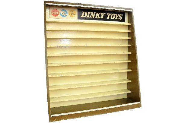 Below is a picture of a Gilbert-branded Dinky Toys display from 1963. In addition to this one, I distinctly remember a free-standing, rotating display with four sides that was installed in a Sears, Roebuck store in Mountain View, California, that same year.