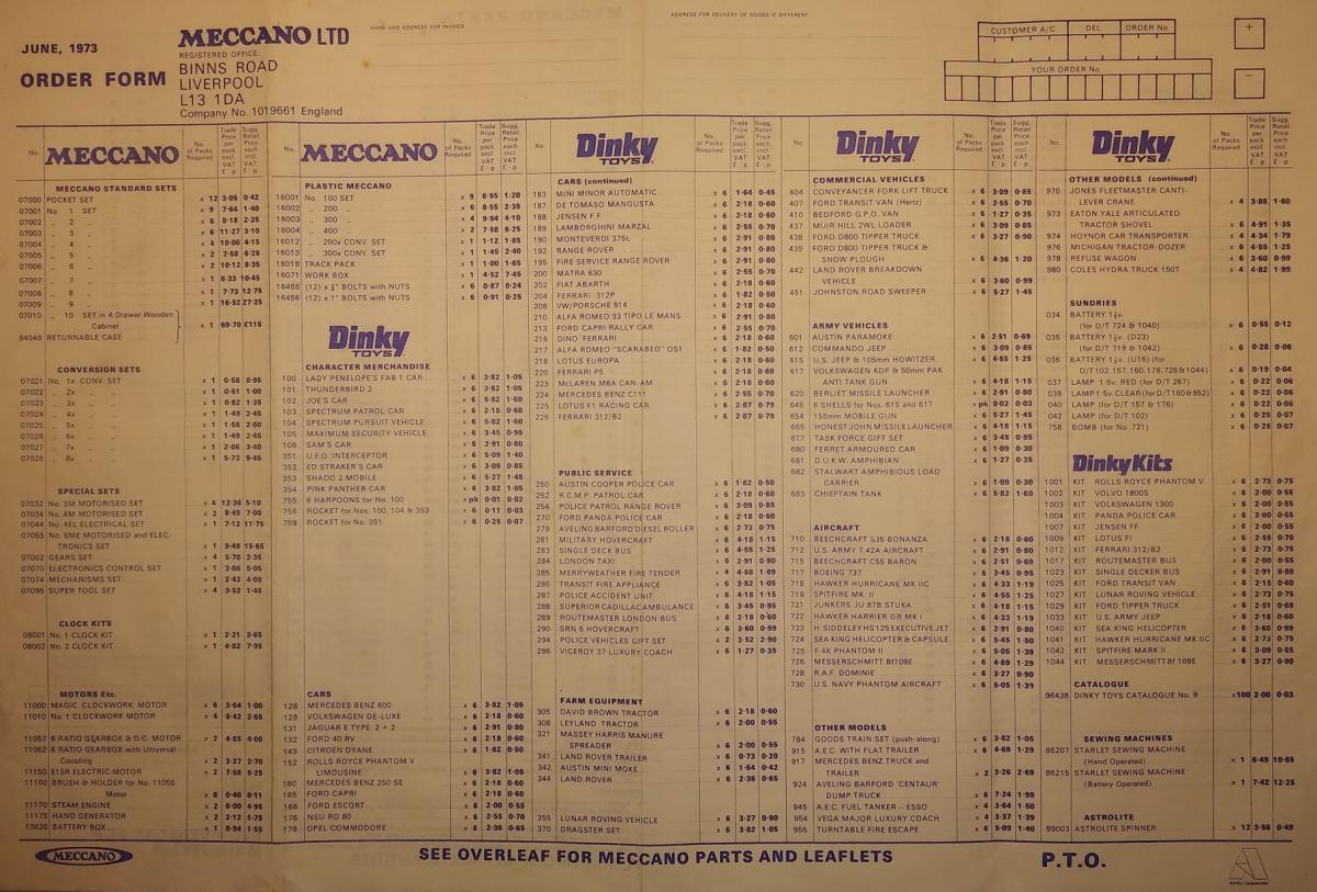 The first Airfix logo I found on the Meccano order form of June 1973, while it does not yet appear on the order form of May 1973. Jan Oldenhuis, 12-1-2018
