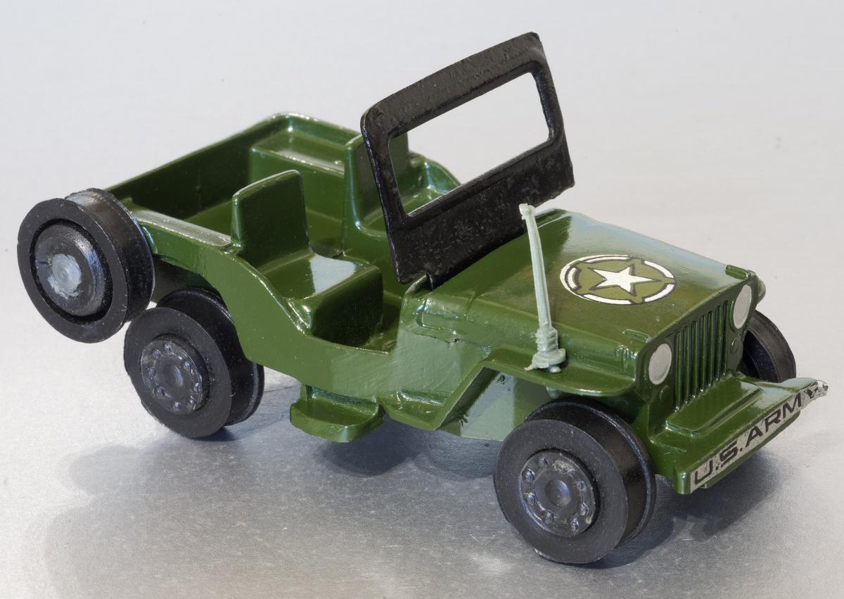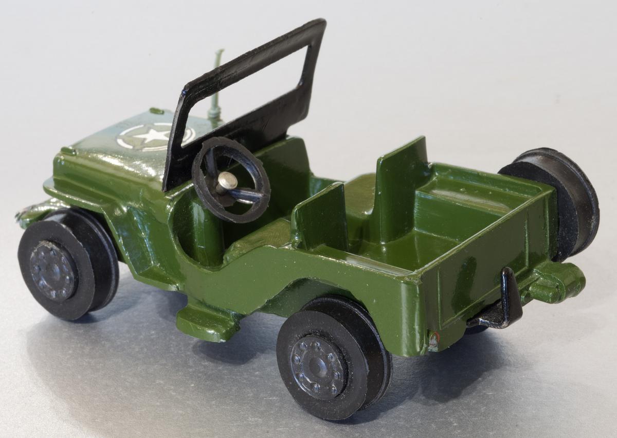 It seems that all the universal Jeeps civilian and military had their front bumper filled in. The US army one had two different base plates. The early ones were those made in Liverpool, later Nicky made their own plate. There are at least four different boxes for this jeep, one of them was marked 'ARMY JEEP'. Where all the army jeeps packed in these boxes or were some packed in th 'UNIVERSAL JEEP' boxes ? Any way, a rare model in a very good state. Congratulations David.Jacques.P.S. I have a mint boxed Nicky howitzer for sale, Why not make me an offer ?