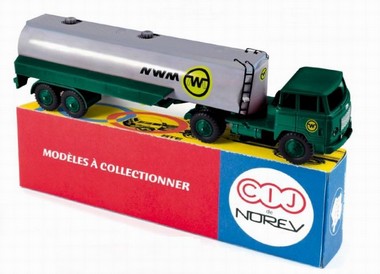 Dan Toys and Atlas are not the only ones to plagiarize the work of Meccano. Over thirty models have been issued already. NOREV who now owns the marque C.I.J. counterfeits many Dinky Toys models, mainly in new liveries but sometime badly copied like this Unic porte tubes with huge trailer posts. One of their latest models is the Peugeot 404 with trailer and skis. The next model will be the Berliet bus in the livery of the city of Nice transport company.No doubt, all these models will later be part of the Atlas collections as all the tools are ready. The trio Norev - Atlas - Dan Toys has certainly more ideas to use all these tool at a later date. Why not a Dinky Supertoys collection ?