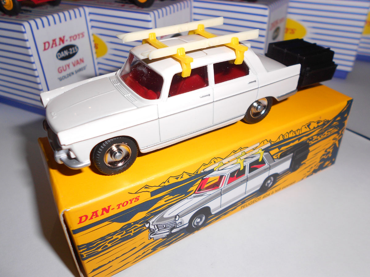 To the same order I added a Dan copy of the Dinky 536 Peugeot 404 - but a copy in white. This was about 18 and it's really nice. Has suspension and the little skis on the roof and everything. Now I know some of our members have their reservations about all these oriental copies becoming available, but I have to say I think it's awesome that there's a high street toy shop where you can buy what are essentially dinky toys straight off the shelves.