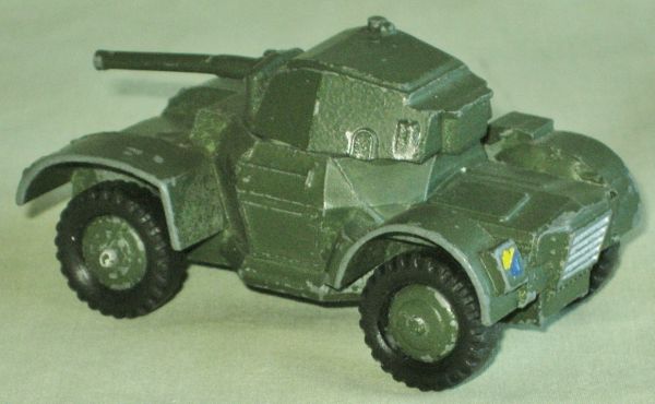On the subject of Dinky Toy copies here are a couple more by Kemlow. They were mainly known for their range of railway accessories, but did make a small range of military toys. The Bedford truck (or 3-ton Army Wagon) is a good copy of the Dinky toy but does not have a spare wheel under the tray. The ammunition limber is completely different from the Dinky model but the 25pdr gun is reasonably similar. The Armoured Car is also a good copy of the Dinky toy but has no base. Chris